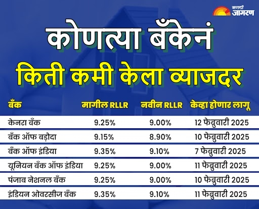 कॅनरा बँकेने त्यांचा RLLR 9.25 टक्क्यांवरून 9.00 टक्के केला आहे. हा नवीन दर 12 फेब्रुवारी 2025 पासून लागू होईल. ही कपात 12 फेब्रुवारी 2025 नंतर उघडलेल्या खात्यांना लागू होईल.