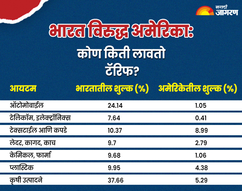 कृषी संबंधित वस्तूंवर भारत सरासरी 37 टक्के शुल्क आकारतो, परंतु शेतकऱ्यांशी संबंधित असल्याने कृषी वस्तूंवरील शुल्क कमी करणे कठीण दिसते. तज्ञ परस्पर शुल्क दोन प्रकारे लागू करण्याबद्दल बोलत आहेत. एक मार्ग म्हणजे, समजा भारत कृषी वस्तूंवर सरासरी 37 टक्के शुल्क आकारतो आणि अमेरिका सध्या 5 टक्के शुल्क आकारते. वस्तूंच्या आधारावर परस्पर शुल्क आकारल्यास अमेरिकाही भारताच्या कृषी वस्तूंवर सरासरी 37 टक्के शुल्क आकारेल.
