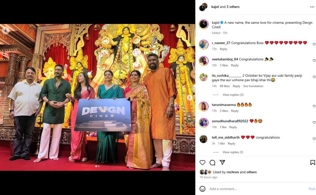 दुर्गापूजेच्या नवव्या दिवशी अजय देवगण त्याच्या कुटुंबात भव्य समारंभात सामील झाला. संपूर्ण कुटुंबाने प्रथम पारंपारिक महाआरती केली. त्यानंतर, काजोल आणि अजय देवगण यांनी त्यांच्या "देवगण सिनेएक्स" या प्रॉडक्शन हाऊसच्या नवीन लोगोचे अनावरण केले.