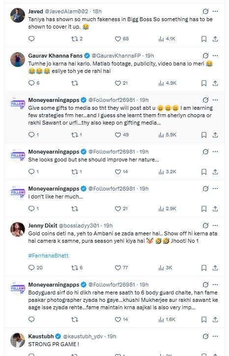 तान्या मित्तल चांदीची नाणी वाटतानाचा व्हिडिओ पाहिल्यानंतर सोशल मीडियावर खळबळ उडाली आहे. एका युजरने लिहिले की, "भाऊ, ती खरोखरच श्रीमंत निघाली, ती चांदीची नाणी वाटत आहे." दुसऱ्या युजरने लिहिले की, "तान्या मित्तलने बिग बॉसमध्ये इतका खोटारडेपणा पसरवला की आता ते लपवण्यासाठी काहीतरी करावे लागेल."