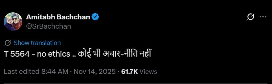 अमिताभ बच्चन यांनी त्यांच्या एक्स हॅन्डलचा वापर करून स्पष्टपणे वडिलांबद्दलची नाराजी व्यक्त केली आणि लिहिले, "कोणतीही नैतिकता नाही. नीतिमत्ता नाही."
