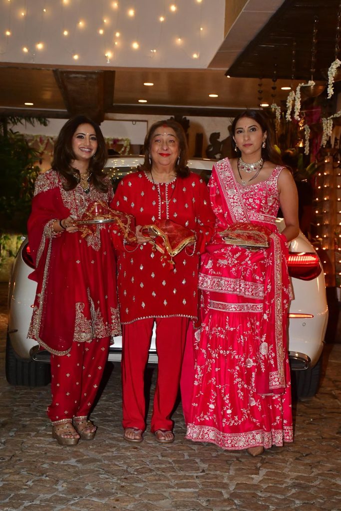 रीमा जैन, अलेखा अडवाणी आणि कपूर कुटुंबातील इतर सदस्यांसह लाल रंगाच्या सुईडमध्ये आल्या. अलेखा तिच्या पहिल्या करवा चौथसाठी खूप उत्साहित दिसत होती आणि तिने पॅप्ससाठी हसतमुखाने पोज दिली.