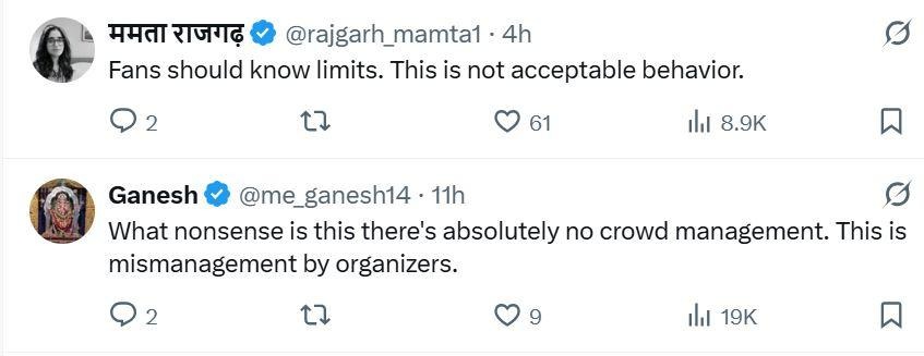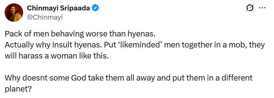 एका व्यक्तीने लिहिले की चाहत्यांनी त्यांच्या मर्यादेत राहण्याची गरज आहे. गायिका चिन्मयी श्रीपादानेही आपला राग व्यक्त केला. तिने लिहिले की, "हा तरसापेक्षाही वाईट वागणारा पुरुषांचा गट होता." इतर अनेक जण सोशल मीडियावरही आपला राग व्यक्त करत आहेत.