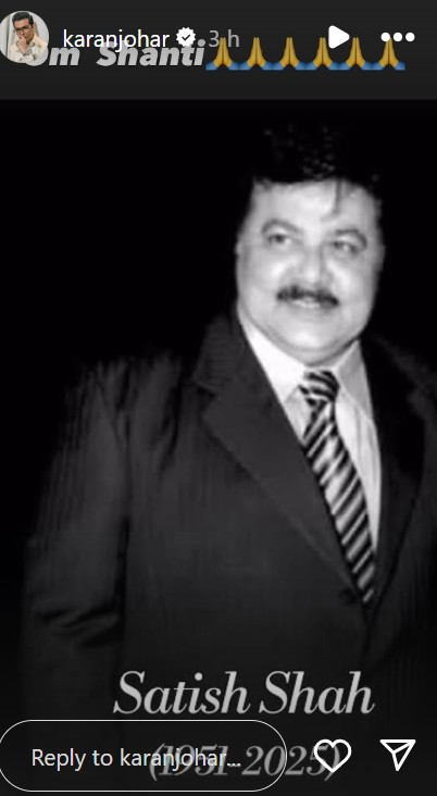 Deeply saddened by the passing of Shri Satish Shah Ji. He will be remembered as a true legend of Indian entertainment. His effortless humour and iconic performances brought laughter into countless lives. Condolences to his family and admirers. Om Shanti.