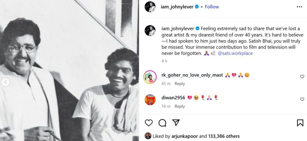 शाह यांच्या "साराभाई व्हर्सेस साराभाई" चित्रपटातील सह-कलाकार राजेश कुमार यांनी एक पोस्ट शेअर केली, ज्यामध्ये ते दुःखद बातमी सहन करू शकले नाहीत असे म्हटले आहे. त्यांनी लिहिले, "माझ्यासाठी हा सर्वात वाईट काळ आहे. सतीशजी आता राहिले नाहीत हे मला अजूनही समजत नाही. मी फक्त एवढेच म्हणू शकतो की मला माझे वडील गमावल्यासारखे वाटत आहे. ते जीवन आणि विनोदाने परिपूर्ण माणूस होते."