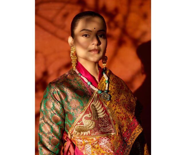 कंगनाचे सुंदर छायचित्र 'गोंचा' पासून प्रेरित होते, ज्याला 'कोस' किंवा 'सुलेमान' असेही म्हणतात. हा एक लांब झगा आहे, जो पारंपारिकपणे लोकर, मखमली किंवा कापसापासून बनवला जातो, जो लडाखच्या महिलांना कठोर पर्वतीय हवामानापासून संरक्षण देतो.