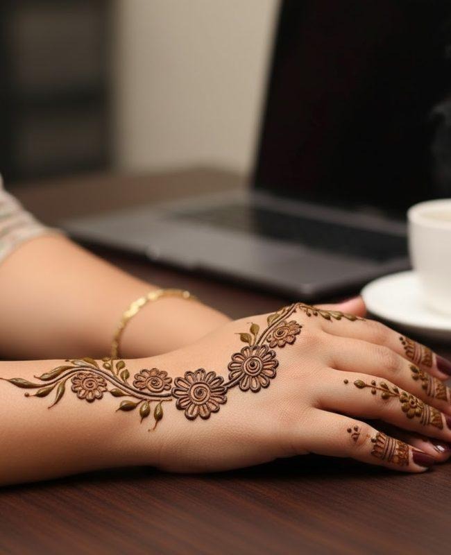जर तुम्ही नोकरी करणारी महिला असाल आणि तुमच्याकडे गुंतागुंतीच्या, गुंतागुंतीच्या मेहंदी डिझाइनसाठी वेळ नसेल, तर तुम्ही ही 10 मिनिटांची डिझाइन वापरून पाहू शकता. ही हाताची डिझाइन लावायला सोपी तर आहेच पण ती सुंदरही दिसते. तुमच्या हातांवरील फुलांच्या आणि पानांच्या वेली आणि बोटांच्या टोकांवर पूर्ण मेंदी तुम्हाला एक सुंदर लूक देईल.