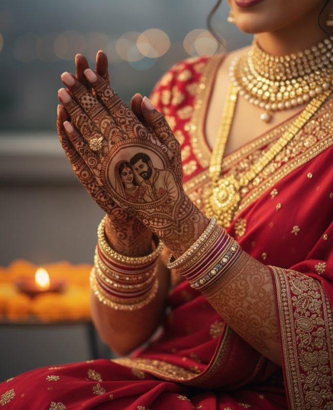 करवा चौथच्या निमित्ताने, जोडप्यांच्या हातावर करवा चौथ साजरा करणारे डिझाइन सर्वात लोकप्रिय आहेत. शिवाय, जोडप्यांच्या हातांभोवतीची डिझाइन ते आणखी खास बनवते. जर तुम्हाला पूर्ण करवा चौथचा लूक हवा असेल तर ही डिझाइन पहा. ती सुंदर आणि क्लासी दिसते.