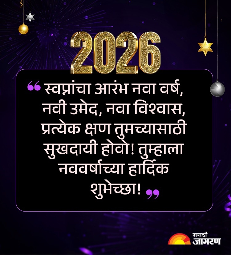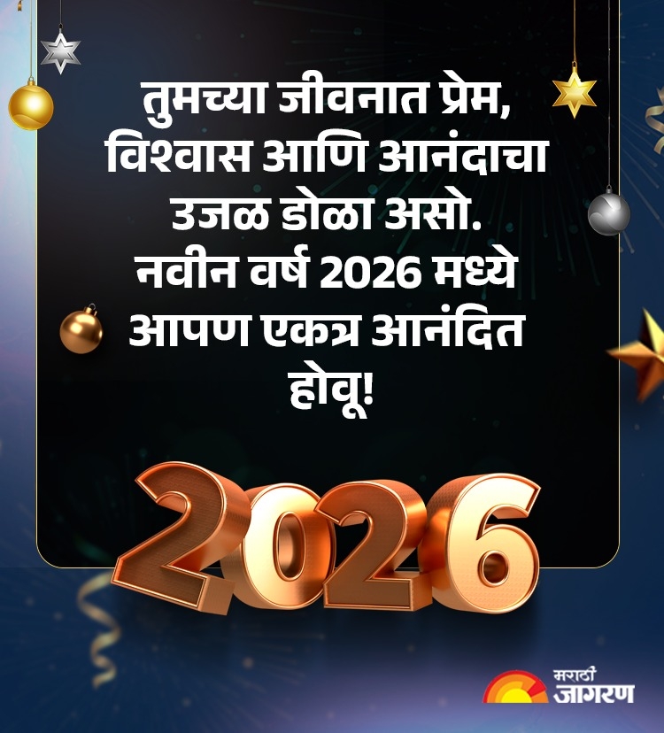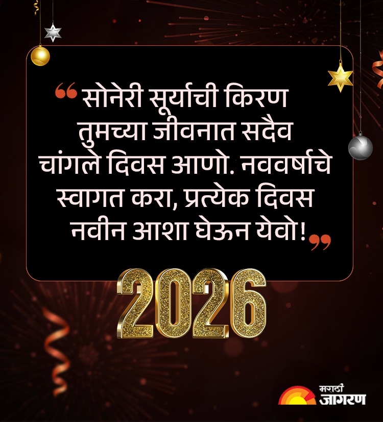 Happy New Year 2026 Wishes Quotes in Marathi: नवीन वर्षाच्या शुभेच्छा देताना, जरा वेगळ्या, मनापासून दिलेल्या शुभेच्छा कशा असाव्यात? आपल्याला वाटतं की त्यात थोडा स्पेशल टच असावा, जो वाचून समोरचं व्यक्ती खुश होईल. नवीन वर्षाच्या मराठमोळ्या शुभेच्छा..! प्रियजनांना पाठवा या हटके शुभेच्छा, संदेश, मेसेज, नवीन वर्षाची सुरूवात करा या गोड स्टेटसने (Happy New Year 2026 wishes WhatsApp Status)