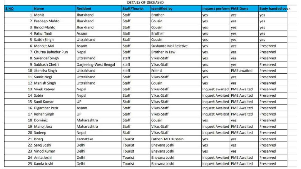 नाईट क्लबला लागलेल्या आगीत पाच पर्यटकांचाही मृत्यू झाला, तर उर्वरित कर्मचारी होते. क्लबच्या कर्मचाऱ्यांमध्ये आसाम, बंगाल, झारखंड, महाराष्ट्र, उत्तराखंड, उत्तर प्रदेश आणि नेपाळमधील लोकांचा समावेश होता. या घटनेत त्यांचा मृत्यू झाला.