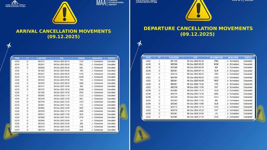 इंडिगोच्या वेबसाइटवरील माहितीनुसार, आज (9 डिसेंबर) 100 हून अधिक इंडिगो उड्डाणे रद्द करण्यात आली आहेत. यामध्ये चेन्नई, बेंगळुरू आणि तिरुवनंतपुरम सारख्या विमानतळांचा समावेश आहे. दरम्यान, इंडिगोच्या निष्काळजीपणानंतर सरकारनेही कारवाई सुरू केली आहे.