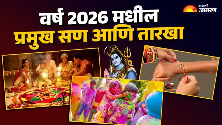 जेएनएन, मुंबई: वर्ष 2026 मध्ये भारत आणि महाराष्ट्रातील धार्मिक आणि सांस्कृतिक सण उत्साहात साजरे होणार आहेत. जानेवारीत मकर संक्रांतीने वर्षाची सुरुवात होईल तर फेब्रुवारीत महाशिवरात्री साजरी केली जाईल. मार्चमध्ये होळी आणि गुढीपाडवा, एप्रिलमध्ये राम नवमी, हनुमान जयंती आणि अक्षय तृतीया, मे महिन्यात महाराष्ट्र दिन आणि बुद्ध पौर्णिमा साजरे होतील.