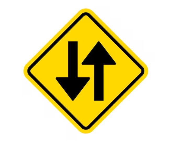 या फलकावरून असे दिसून येते की आतापासून एकाच रस्त्यावर दोन्ही दिशांनी वाहने येतील, त्यामुळे अतिरिक्त काळजी घेणे आवश्यक आहे.