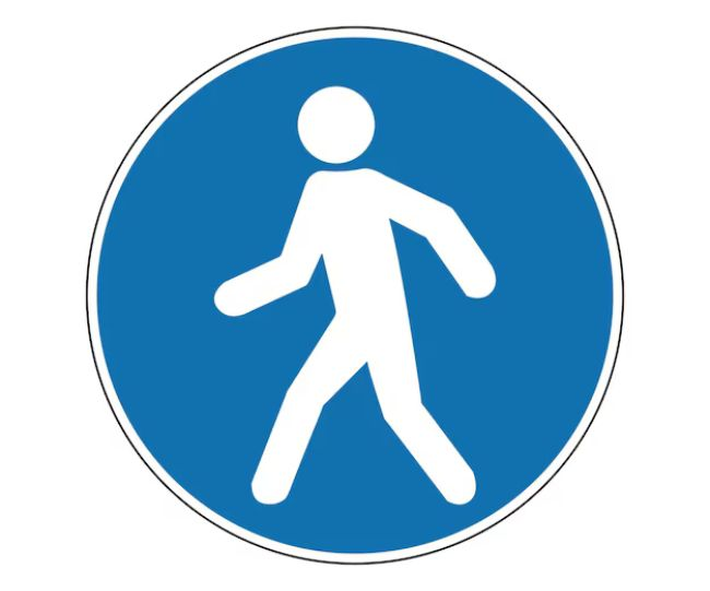 हे चिन्ह पादचारी पुढे रस्ता ओलांडत असल्याचे दर्शवते. वाहनचालकांनी थांबण्यासाठी तयार असले पाहिजे.