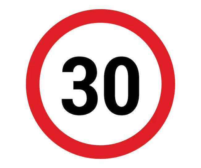 हे वेगमर्यादेचे चिन्ह आहे जे दर्शवते की येथे वाहनांचा वेग 30 किमी प्रतितास पेक्षा जास्त नसावा.
