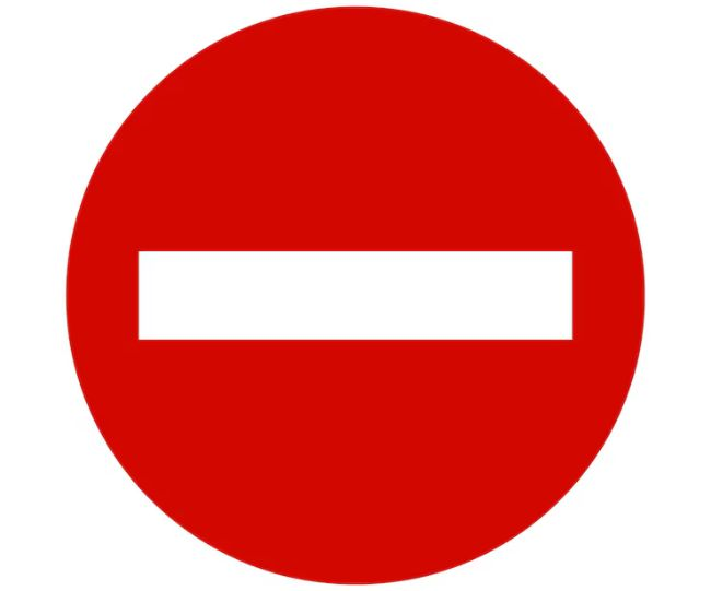 या चिन्हाचा अर्थ असा आहे की या रस्त्यावर किंवा लेनमध्ये प्रवेश करण्यास सक्त मनाई आहे. हे सहसा एकेरी रस्त्याच्या विरुद्ध बाजूला ठेवलेले असते.