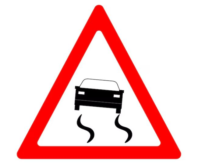 जर रस्ता ओला, कच्चा किंवा निसरडा असेल तर हे फलक लावले जाते. हळूवारपणे ब्रेक लावणे आणि नियंत्रणात पुढे जाणे महत्वाचे आहे.