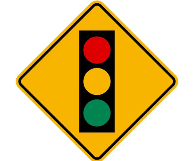 पुढे एक ट्रॅफिक सिग्नल आहे. TRAFFIC SIGNAL AHEAD)